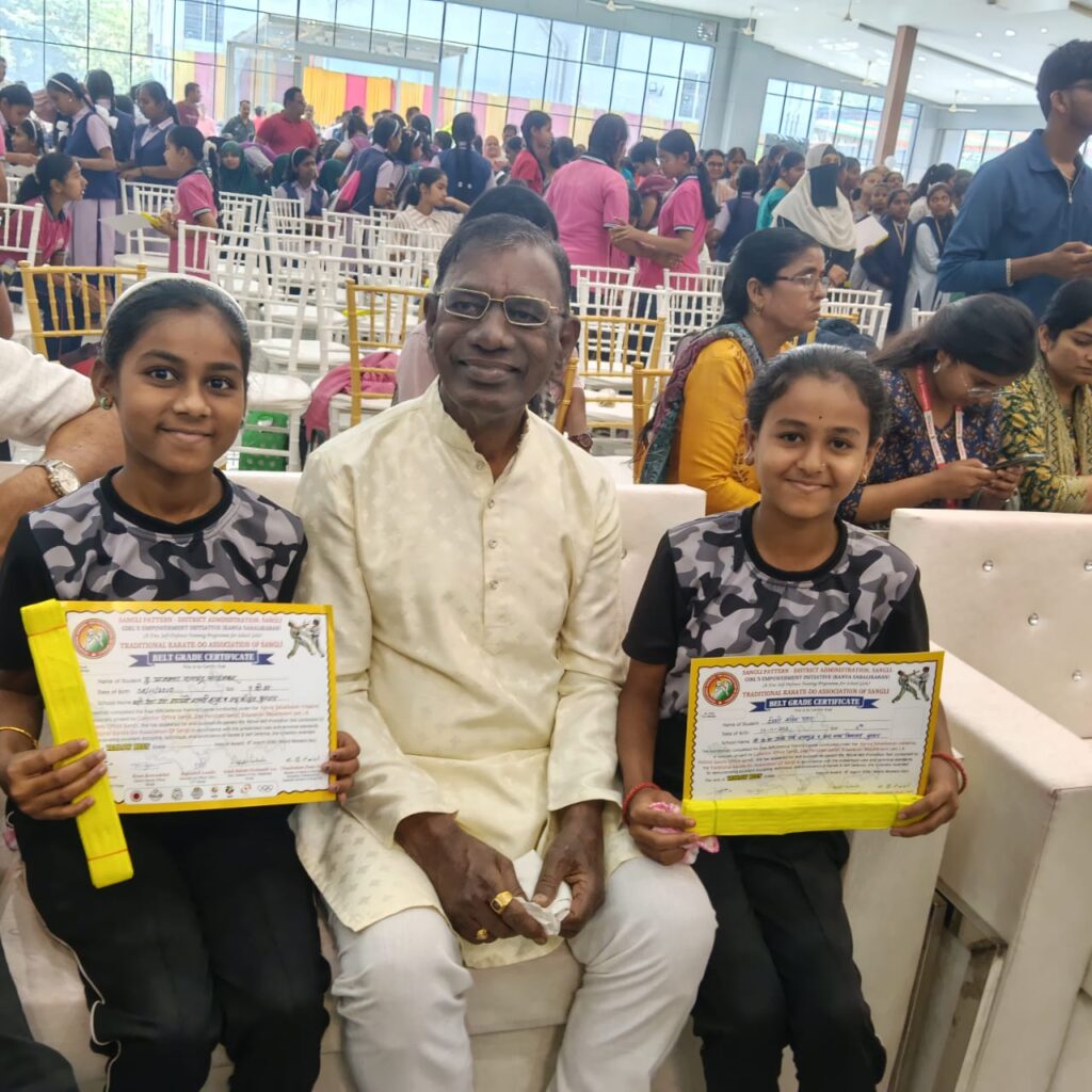 या कार्यक्रमाला पालकमंत्री मा. चंद्रकांतदादा पाटील, खासदार मा. विशालदादा पाटील, विधान परिषदेचे आमदार मा. इद्रिस नायकवडी, जिल्हाधिकारी मा. अशोक काकडे, जिल्हा शिक्षणाधिकारी मा. राजसाहेब लोंढे, जिल्हा क्रीडा अधिकारी किरण बोरवडे तसेच सांगली जिल्हा पोलीस प्रमुख मा. संदीप घुगे यांची प्रमुख उपस्थिती होती.मान्यवरांच्या हस्ते विद्यार्थिनींना येलो बेल्ट व प्रमाणपत्रांचे वितरण करण्यात आले. प्रमाणपत्र स्वीकारताना विद्यार्थिनींच्या चेहऱ्यावर आत्मविश्वास व आनंद स्पष्ट दिसून आला.