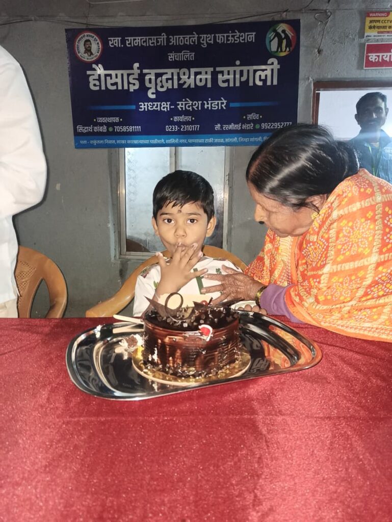चिरंजीव ऋतुराज बनसोडे यांचा चौथा वाढदिवस हौसाई वृद्धाश्रमात साजरा